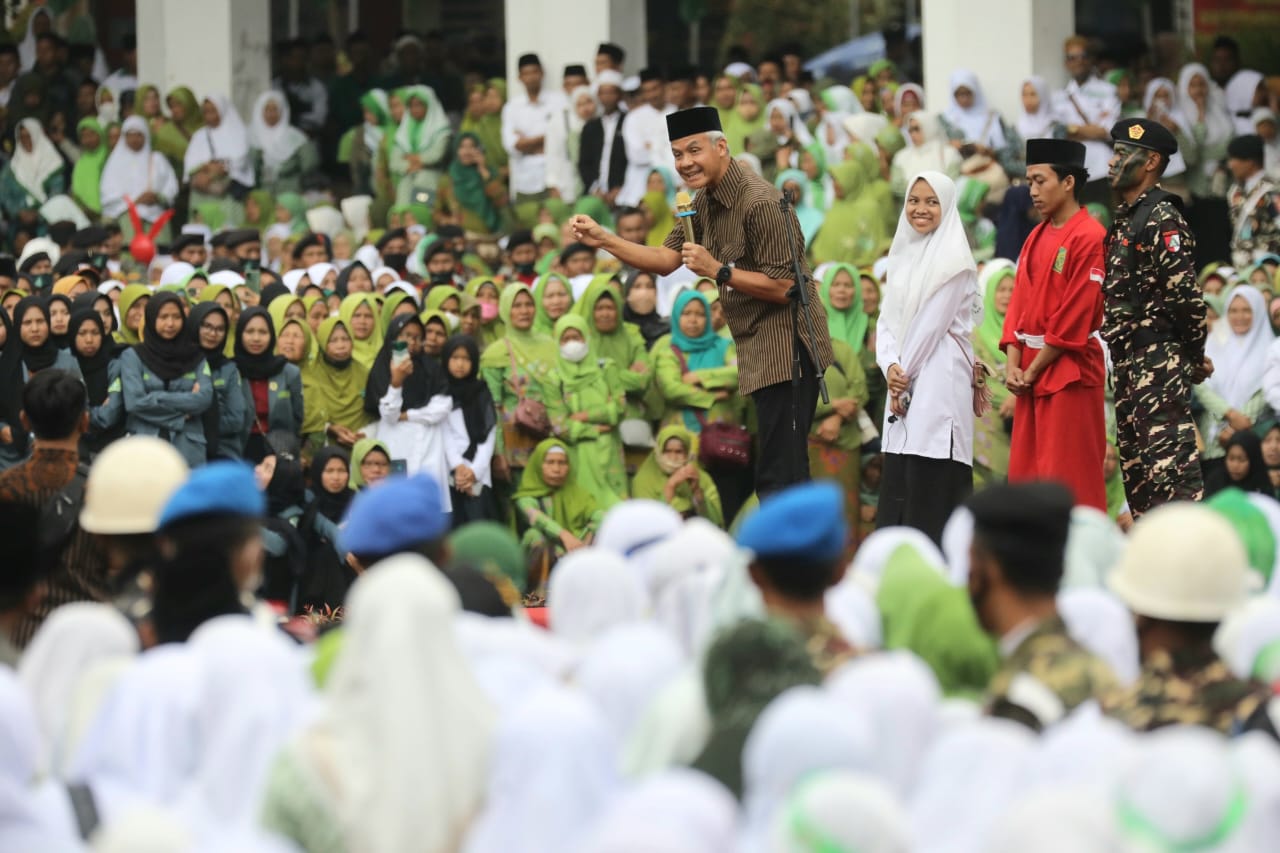 “Anak-anak tadi ada santri, madrasah yang ternyata mereka punya cita-cita tinggi. Saya mau jadi dokter pak, saya mau jadi politisi pak,” ucap Ganjar.