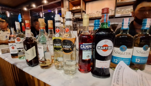 “Dalam operasi tersebut, petugas satpol PP berhasil mengamankan ratusan botol minuman keras berbagai merk, seperti merk Vodca sebanyak 52 botol, Mension 9 botol, Colombus 4 botol dab