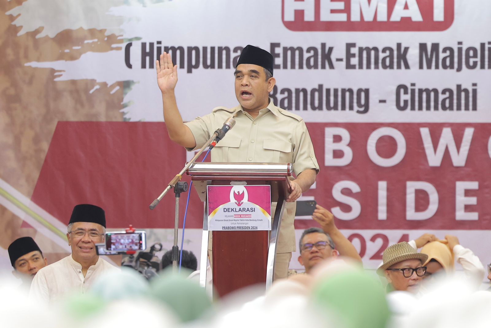 MAHARDHIKAnews.com BANDUNG— Sekjen Partai Gerindra Ahmad Muzani menghadiri deklarasi dukungan ribuan emak-emak yang tergabung dalam 540 majelis taklim se Kota Bandung dan Cimahi, di Kota Bandung, Kamis (14/9).