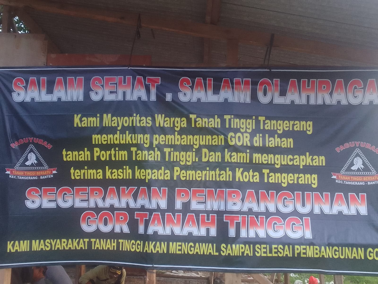 Paguyuban Tanah Tinggi Bersatu yang beranggotakan 300 pemuda dan mayoritas warga di 15 RW Kelurahan Tanah Tinggi bersatu mendukung penuh rencana Pemkot Tangerang membangun GOR di Tanah Tinggi”