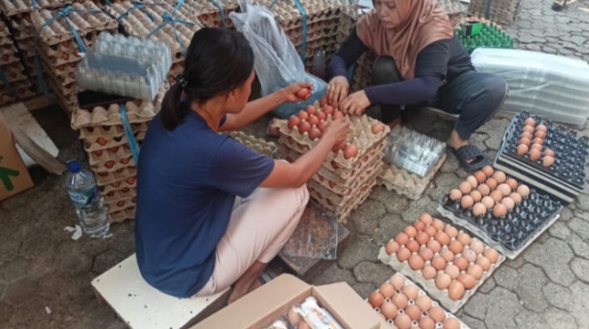 MAHARDHIKAnews.com KABUPATEN TANGERANG, — Dinas Pertanian dan Ketahanan Pangan (DPKP) Kabupaten Tangerang memeriksa bantuan pangan Keluarga Resiko Stunting (KRS) di Gudang Penyimpanan Telur Athung Farm, Kecamatan Legok, Kabupaten Tangerang, kamis (09/11/23).