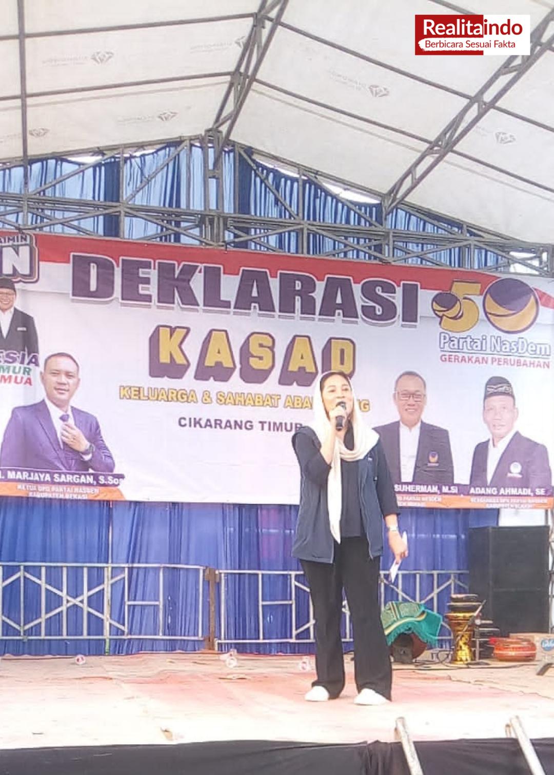 MAHARDHIKAnews.com KAB. BEKASI, – Sherlita Nabilah BA., hadiri acara deklarasi Tim Relawan Keluarga dan Sahabat Abah Adang (KASAD) Caleg DPRD Kabupaten Bekasi Dapil 7 Partai NasDem di Lapangan Sepakbola Forkong Kp. Rawabangkong Des. Sertajaya Kec. Cikarang Timur Kab. Bekasi Kamis (07/12) pukul 15:00 WIB – selesai