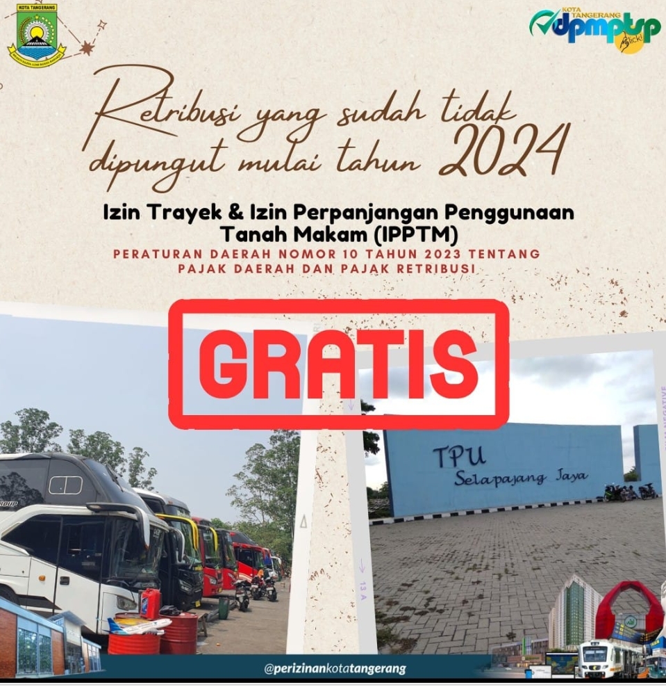MAHARDHIKAnews.com KOTA TANGERANG, – Berdasarkan Peraturan Daerah Kota Tangerang Nomor 10 Tahun 2023, tentang Pajak Daerah dan Retribusi Daerah. Pemerintah Kota (Pemkot) Tangerang menerapkan izin Perpanjangan Penggunaan Tanah Makam (IPPTM) tidak dipungut biaya retribusi atau gratis. Penetapan ini mulai diberlakukan sejak 1 Januari 2024 kemarin ini untuk pemohon yang Izin Perpanjangan Makamnya habis atau jatuh tempo pada 01 januari 2024 dan seterusnya.