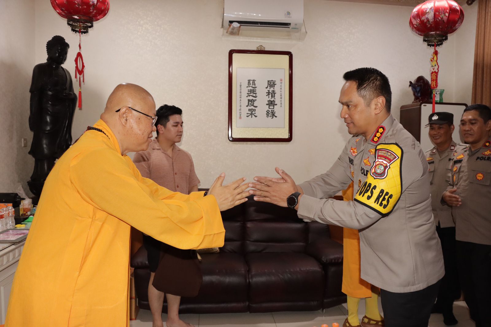 Kapolres Jakbar Tinjau Ibadah Imlek Di Vihara, Tokoh Agama Tionghoa Ikut Mendoakan Pemilu Aman Dan Damai