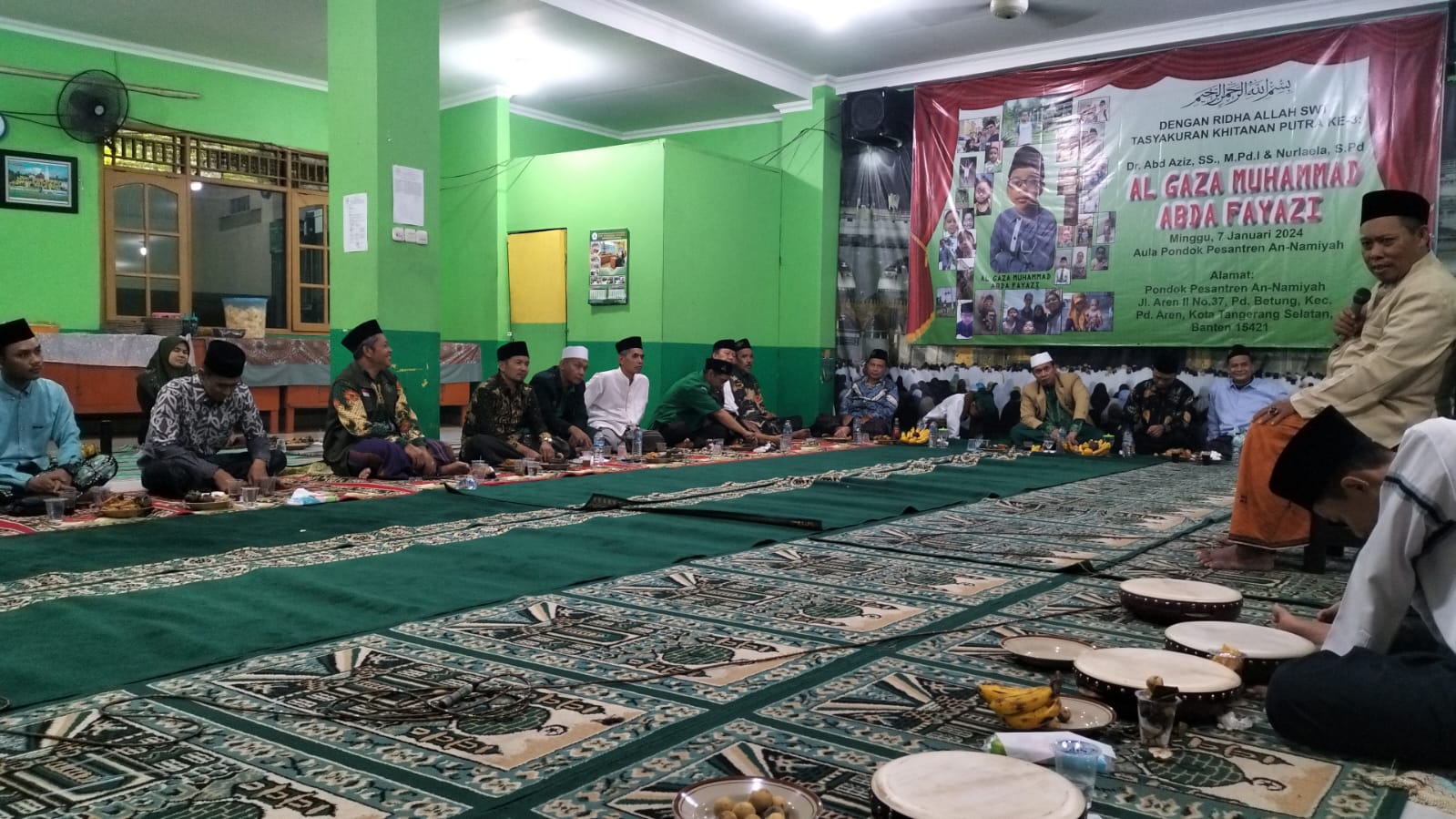 Ketua Syuriah MWC NU Pondok Aren KH. Suhada yang juga merupakan pimpinan Ponpes An Namiyyah selaku tuan rumah mengucapkan banyak terima kasih atas kepercayaan para pengurus yang sudi melaksanakan acara harlah ini di tempatnya.