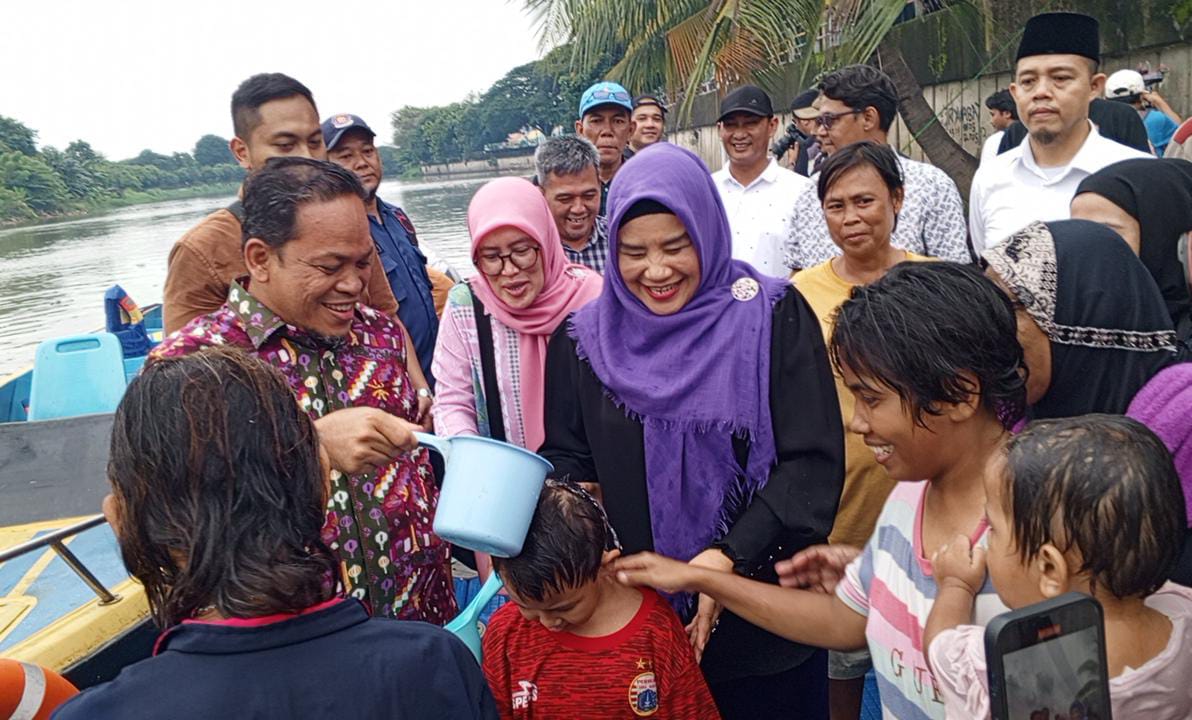 PJ Walikota Bersama Tokoh Dan Warga Kelurahan Babakan Kecamatan Tangerang Menggelar Tradisi Keramas Bersama Di Kali Cisadane