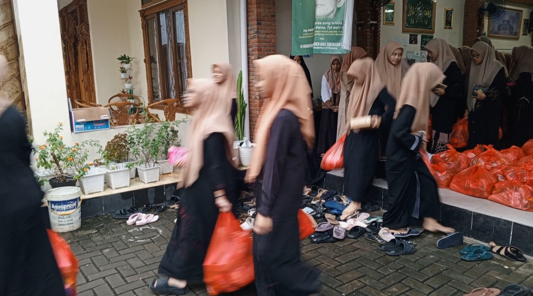 Selepas pembagian bingkisan sembako, acara berlanjut ke Khataman Al Qur’an bersama santri Omah Singgah NU Al Fath dan PP Jam’iyah Islamiyah.