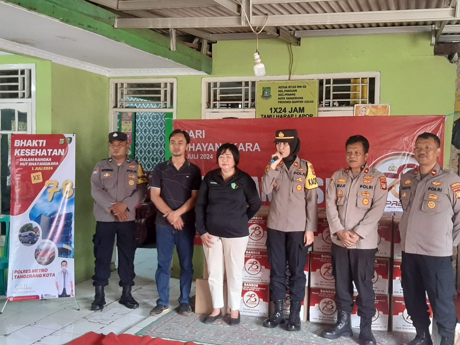 MAHARDHIKAnews.com KOTA TANGERANG — Dalam rangkaian menyambut Hari Bhayangkara ke-78, Polsek Pinang, Polres Metro Tangerang Kota, Polda Metro Jaya menggelar bakti sosial dan bakti kesehatan di wilayah RT 003 RW 002 Kelurahan Pekojan, Kecamatan Pinang, Kota Tangerang. Minggu (16/6/2024).