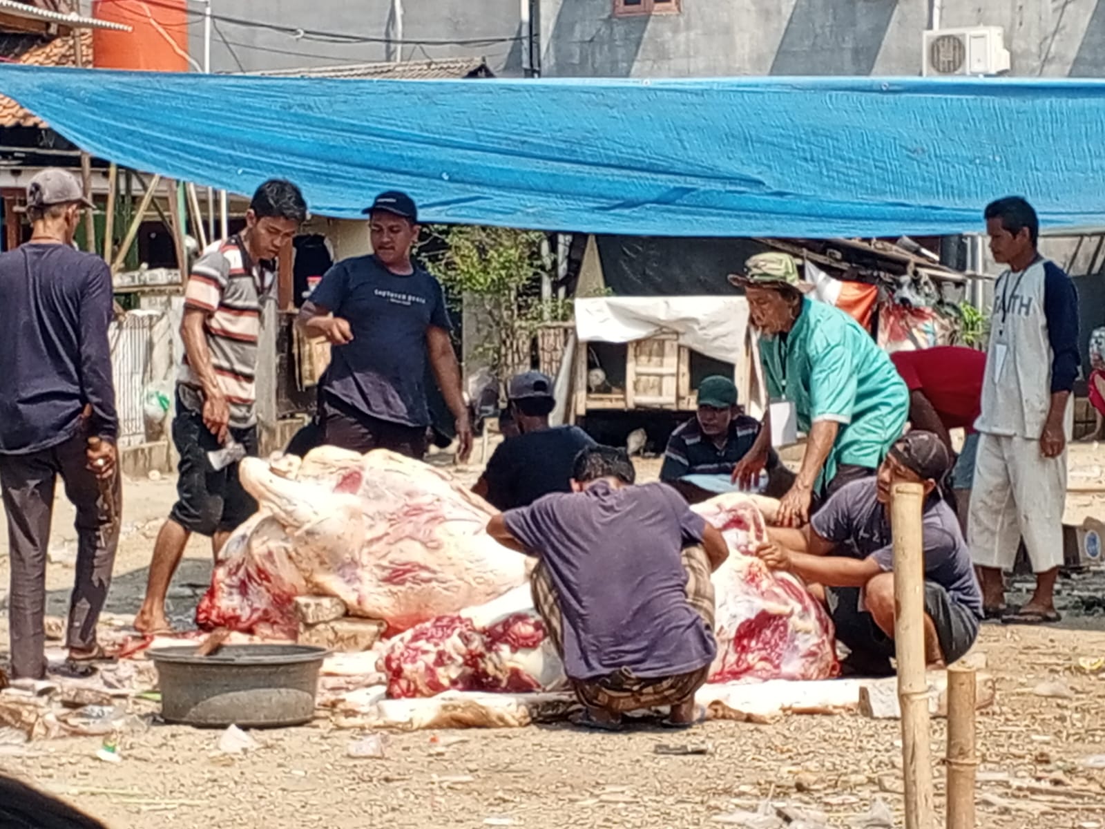 Dewan kemakmuran Mesjid Al Inayah melaksanakan pemotongan hewan qurban sebanyak 10 ekor sapi dan 38 ekor kambing yang akan di bagikan kepada masyarakat pada Senin 17/06/2024 di kampung kelapa kecamatan Tangerang provinsi Banten.