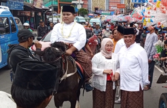 Usai pawai, acara pun berlanjut untuk menerima para tamu undangan. Meski tak mengundang, tamu Heri MS nampak sangat banyak.