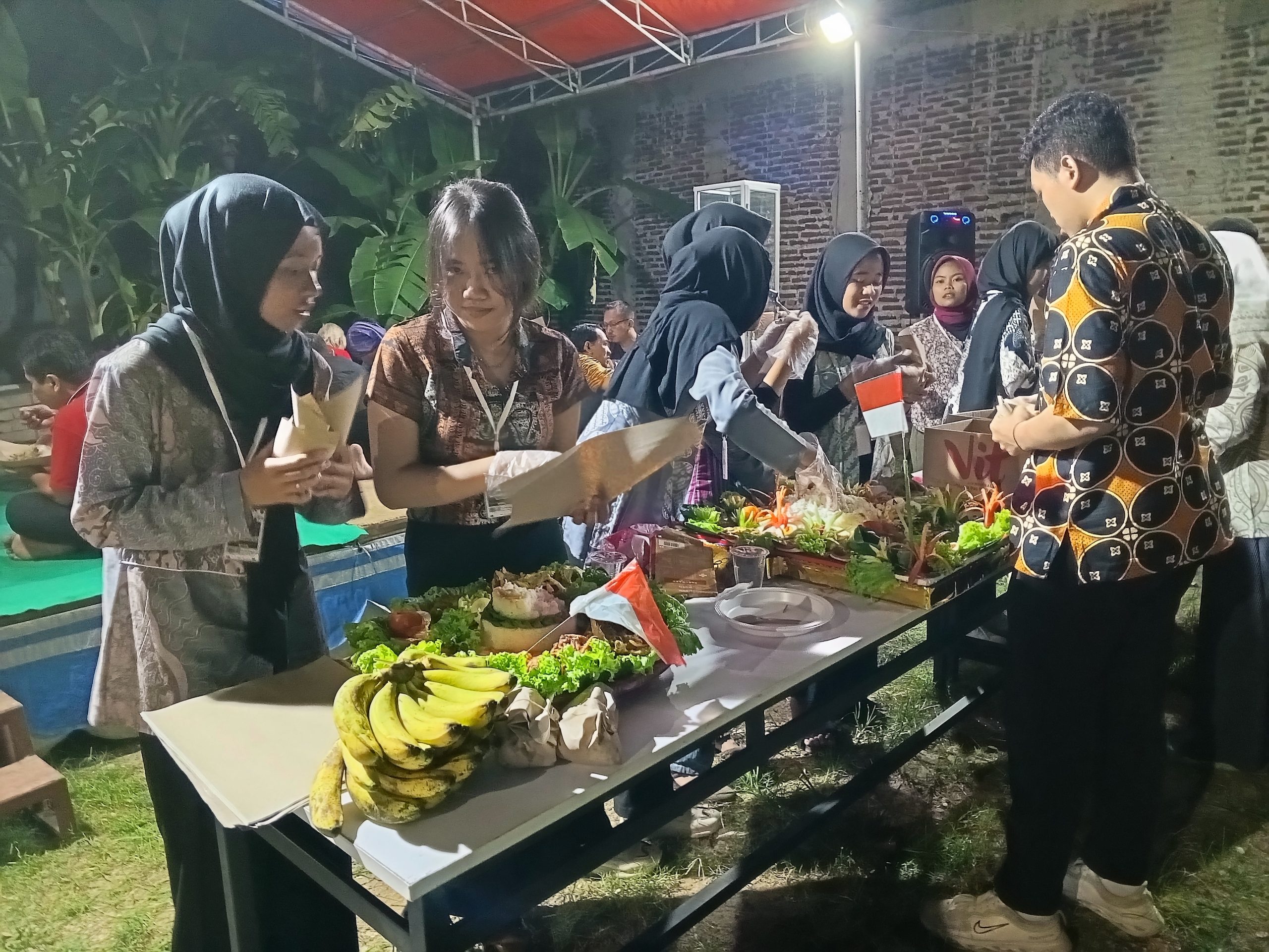 Acara diakhiri dengan pengumuman juara dan makan bersama, nasi tumpeng yang diperlombakan dan makanan lainnya. (ivan)