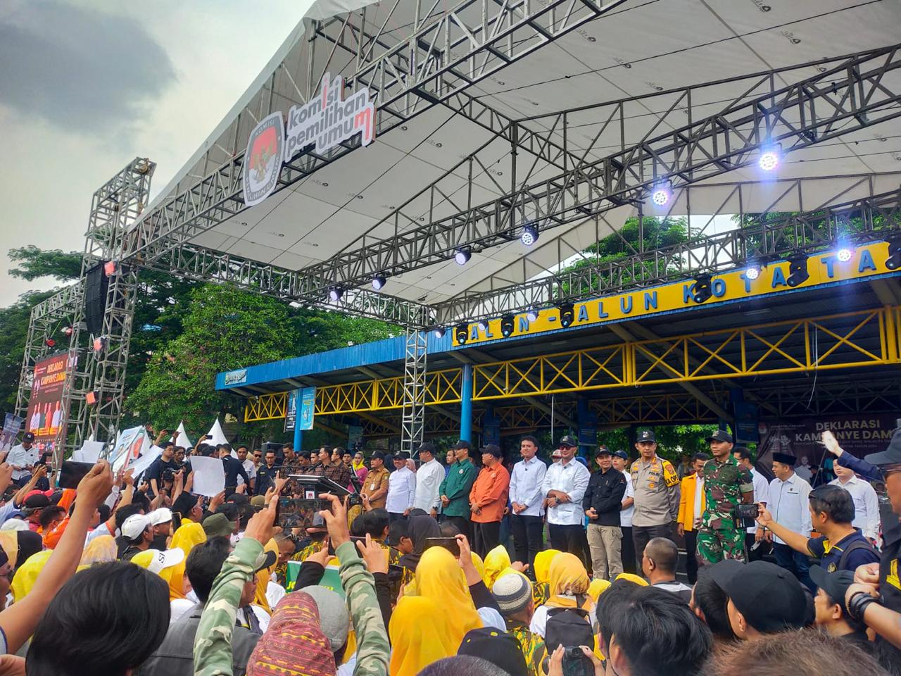 Deklarasi kampanye pilkada damai 2024, tahun ini Berlangsung di Alun-alun Ahmad Yani, Kota Tangerang, Banten. (Ivan)