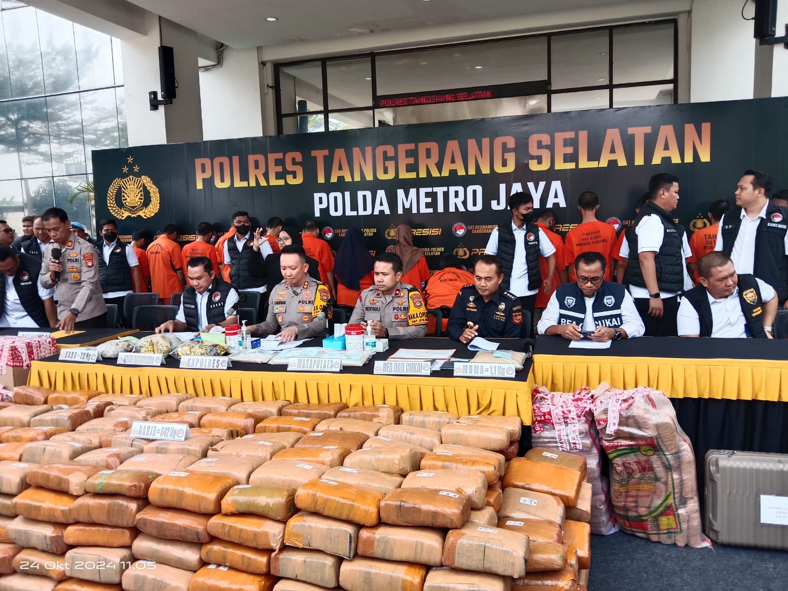 Ungkap Penyalahgunaan Narkotika, Polres Tangsel Sita 642 Kg Ganja, 7,8 Kg Sabu dan 1,1 Kg MDMA