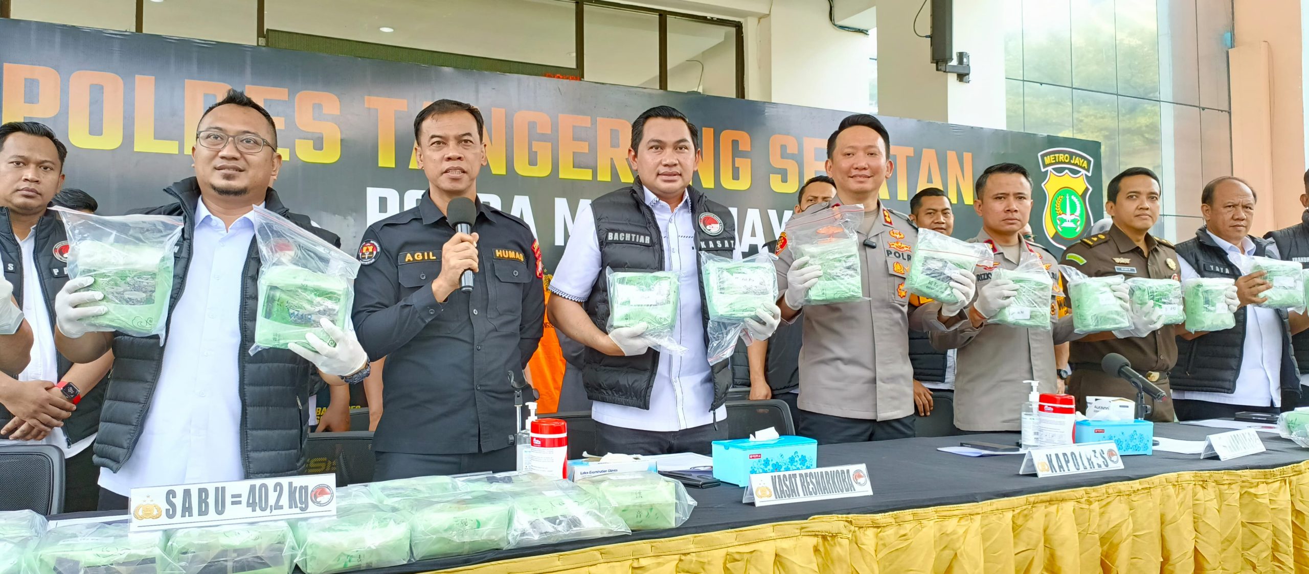 “Apabila diakumulasikan barang bukti narkotika jenis sabu ini bernilai 80 Milyar rupiah. Dengan menyita narkotika sebanyak 40,2 kilogram ini Polres Metro Tangerang Selatan berhasil menyelamatkan 402.640 jiwa,” pungkasnya.