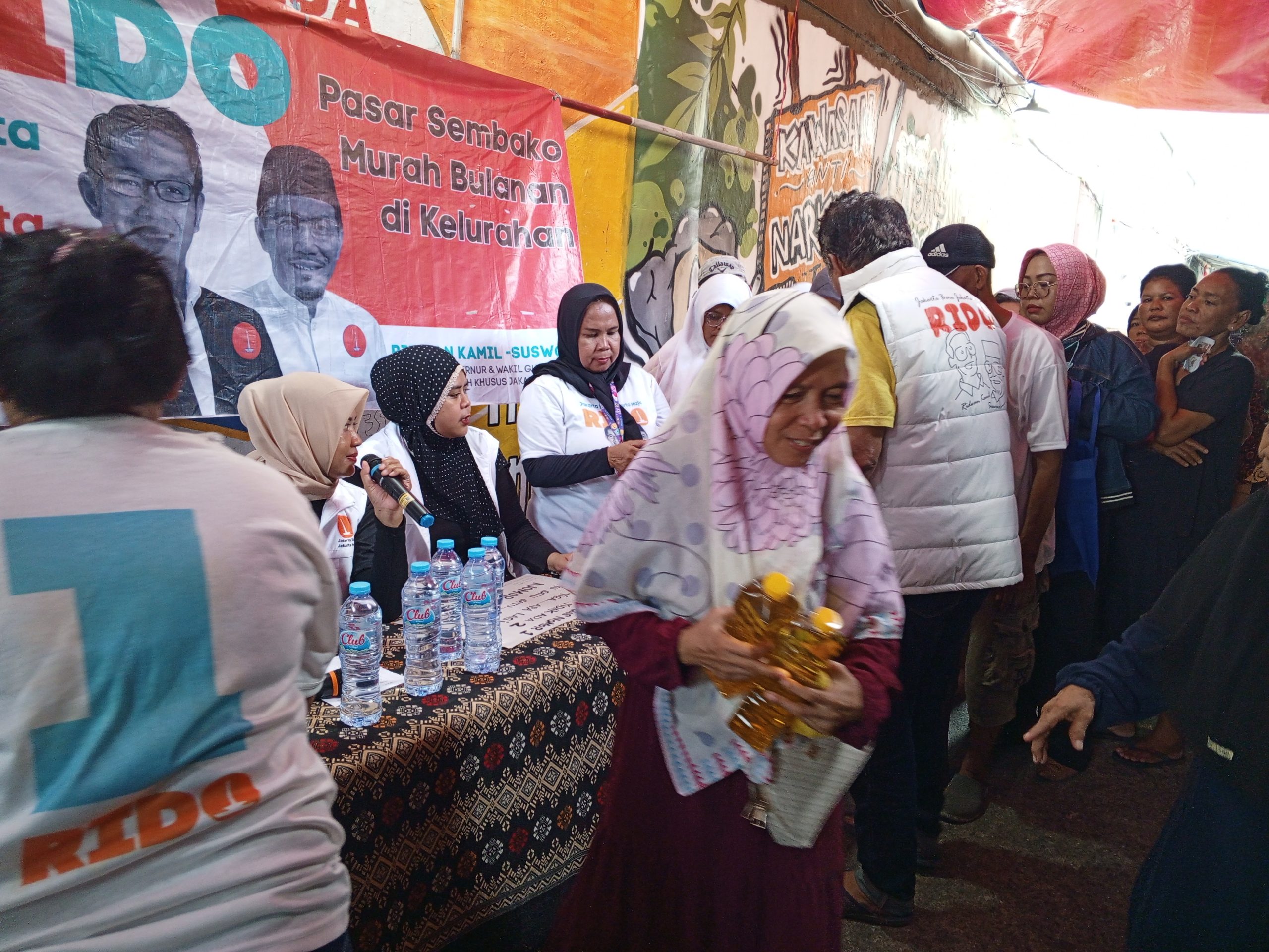 MAHARDHIKAnews.com JAKARTA PUSAT, — Pelaksanaan Pasar Sembako Murah dengan penjualan minyak goreng di Jl. Jatibunder 1, RT 04 RW 09 Tanah Abang Jakarta Pusat oleh timses pasangan Cagub nomor 1 Ridwan Kamil – Siswono (RIDO), Rumah Jakarta Bersatu berjalan tertib dan lancar.