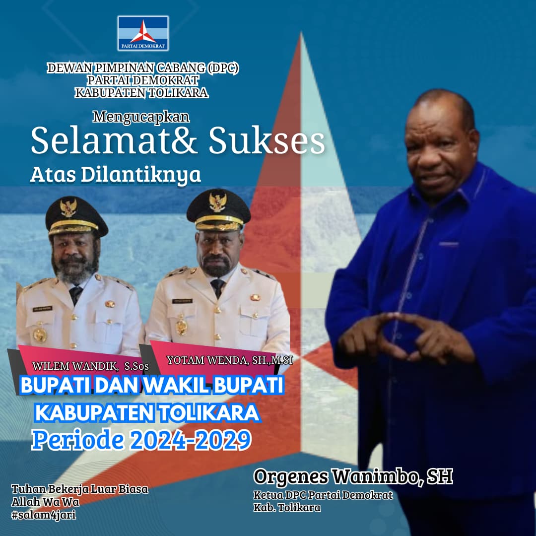 Ketua DPC Partai Demokrat Kabupaten Tolikara Orgenes Wanimbo Ucapkan Selamat Atas Dilantiknya Bupati Dan Wakil Bupati Tolikara